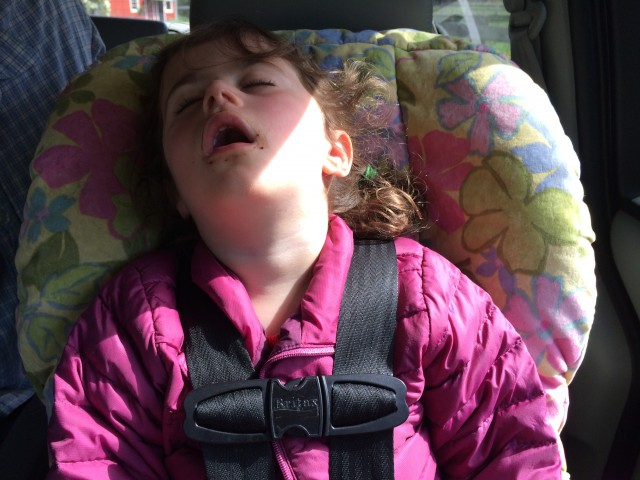 Alicia, Brian and Josie came up Sunday morning to enjoy the awesome weather with us. Brian took Monday off, so we were able to hang out all of Sunday, and then go check out the tulips in Skagit County on Monday. The weather was amazing both days, and we spent nearly every minute outside. Josie got a chocolate thumbprint cookie in Bow and was allowed to eat it in the car after lunch at Skagit Brewing in Mount Vernon. She shared it with everyone in the car – we were very specifically allowed “one bite” – and then she passed out with a full chocolate goatee.
